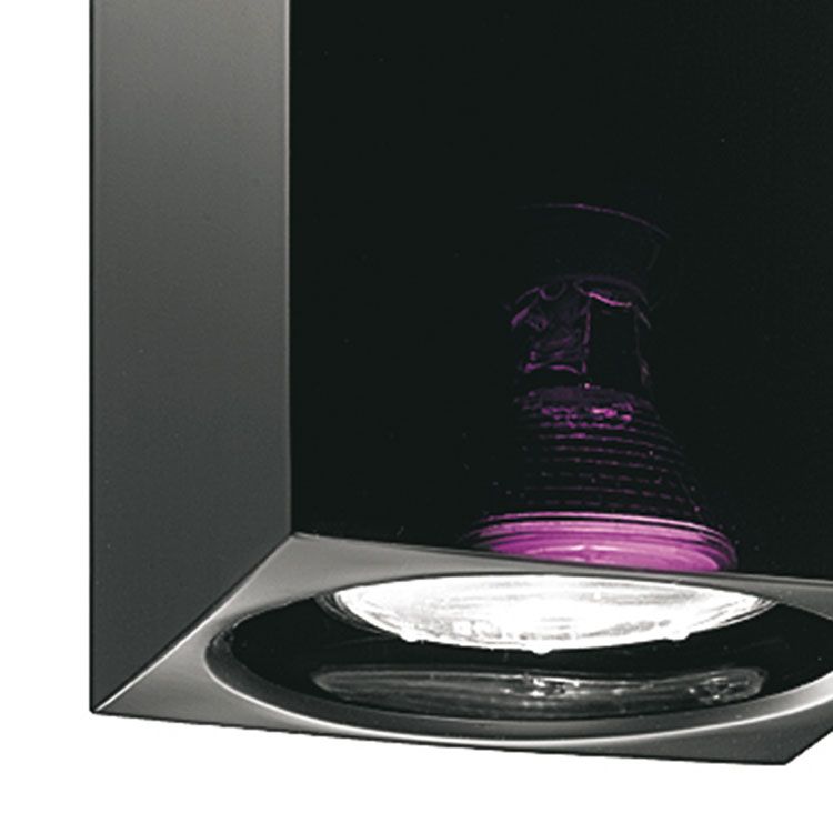Потолочный светильник Cubetto. Квадратный рассеиватель из черного стекла, внутренняя часть — пескоструйная обработка. Металлическое крепление из блестящего хрома. Дизайн Pamio. Арт. D28E0102