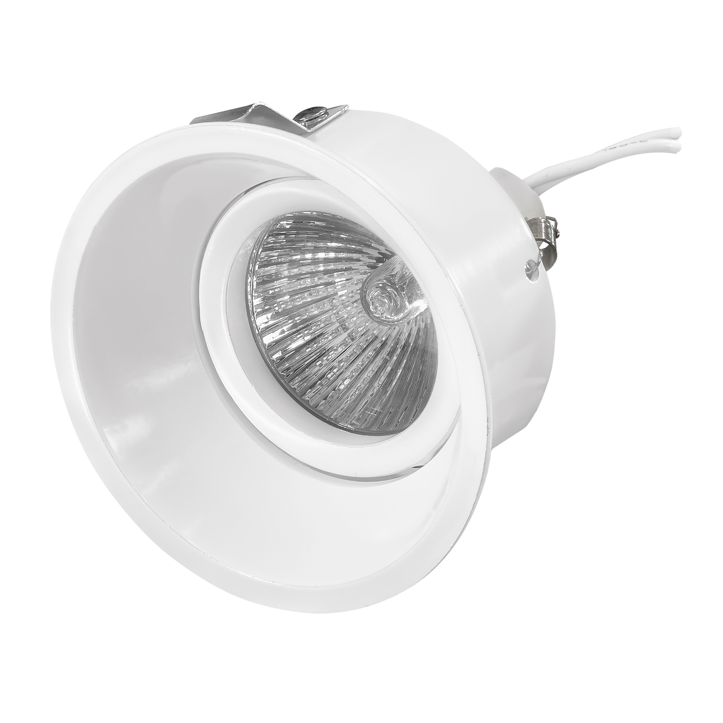 Врезное отверстие: h 85, d 65; Внешние габариты: D83 H2; Материал - основание/плафон: металл; Цвет-основание/плафон: белый; Лампа: МR16 max 50 Вт;