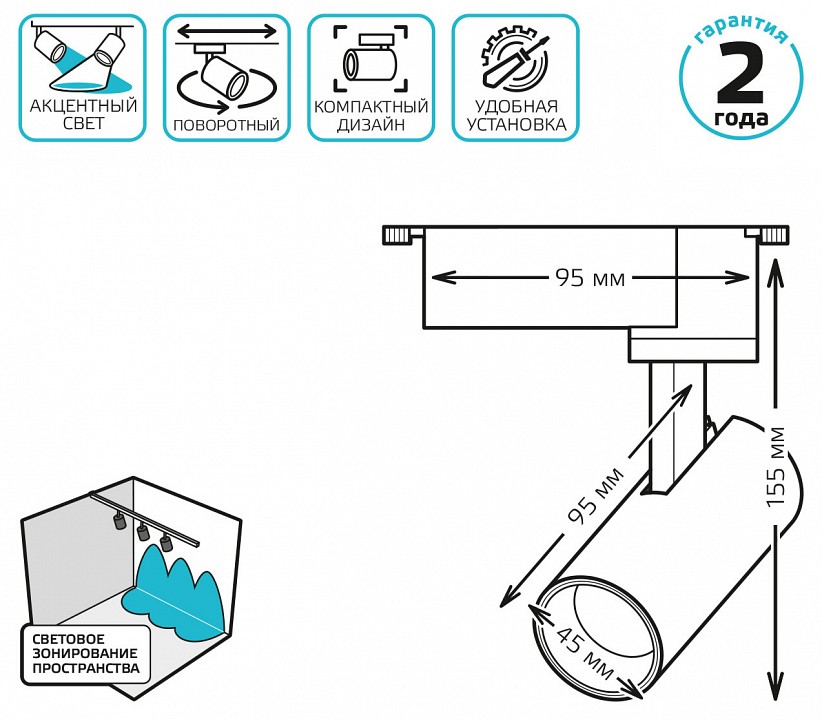поворотный светильник, однофазная система