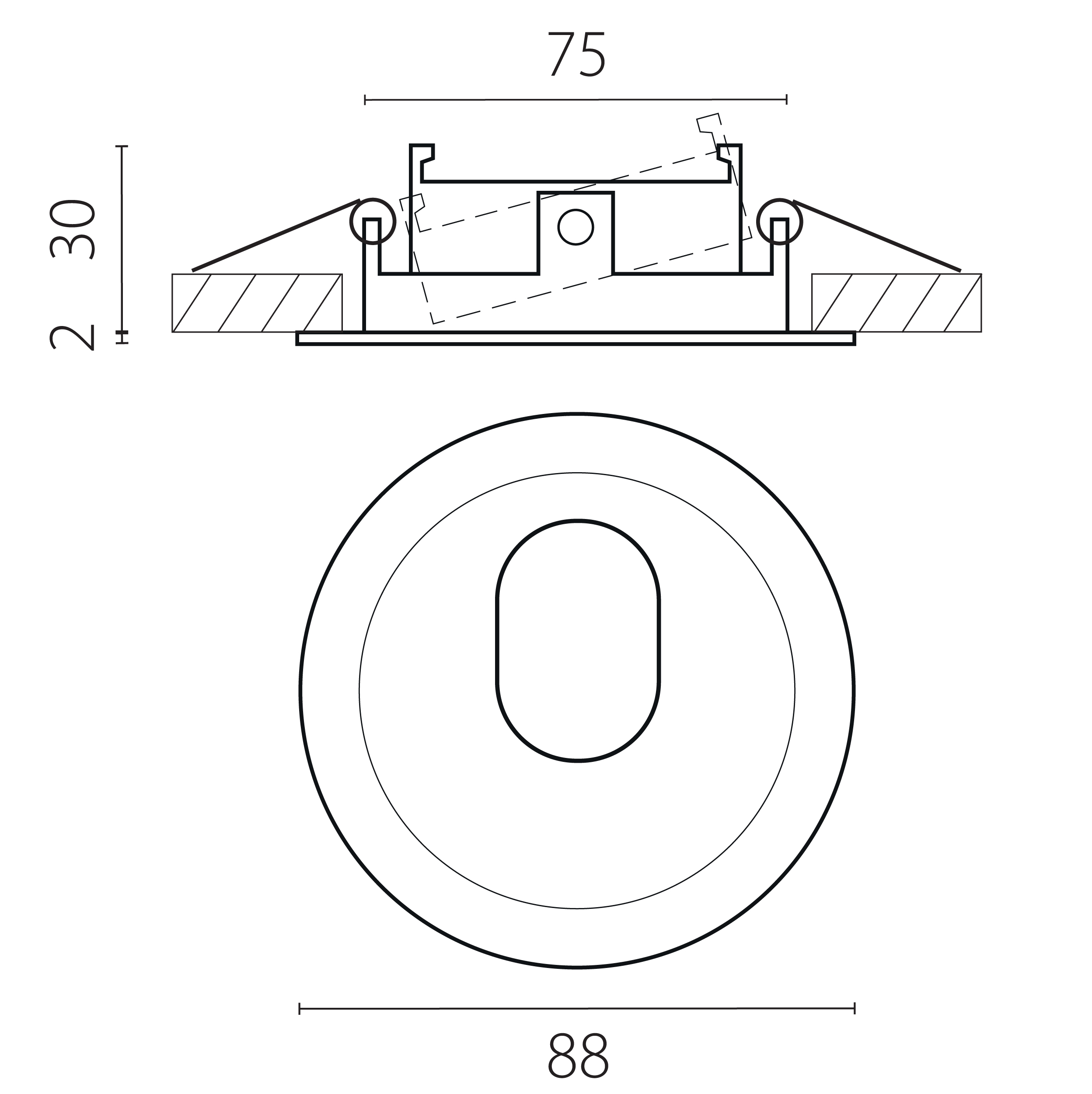 Врезное отверстие: d75-80 h30; Внешние габариты: D88 H2; Материал - основание/плафон: пластик; Цвет-основание/плафон: белый; Рамка термостойкая пластиковая д/крепления LED-источника света в подвесном потолке Ø88 мм UGR<10,подходит для светодиодных модулей 941ХХХ и ламп 9402ХХ(для подключания ламп 9402ХХ необходим патрон 520030 или 520018); Особенности: В КОМПЛЕКТЕ БЕЗ ПАТРОНА